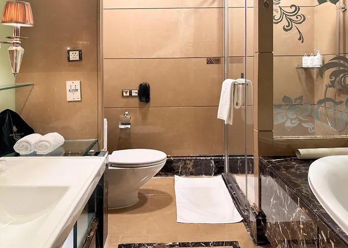 This Shanghai hotel welcomes guests to 219 rooms, some of which comprise a balcony and a terrace, and offer such self-catering options as a mini-fridge-bar. Other comforts include blackout curtains and air conditioning along with free wireless internet and a multi-channel TV for your entertainment. Offering a walk-in shower and a separate toilet, the bathrooms are also fitted with dressing gowns. Enjoy views of the courtyard, while staying at the Chateau Shanghai.